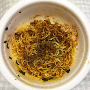 甘めソースなのに、ピリピリッと辛い。もうちょっと麺が多くてもいいなぁ。300円なんだし。