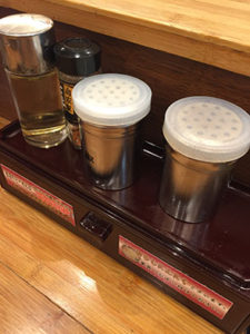 お酢がありますね。ラー油はないけど。そもそもグランドメニューに担々麺はなかったかな?見てないなぁ。お酢があるってことは餃子があるのか?う〜ん、リサーチ不足感否めません。