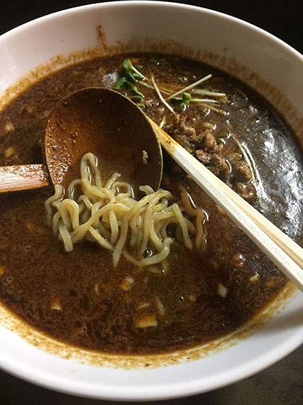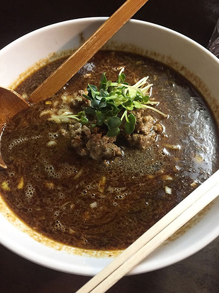 見た目の割に(濃い色、強め)、さっぱりした印象のスープ。