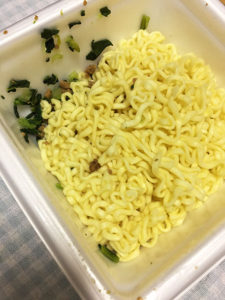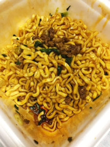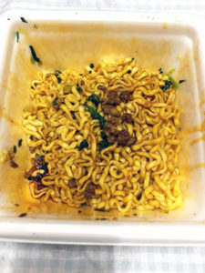 お店で食べた時は、ひき肉、ソースがたっぷり余ったけどね。カップ麺だから仕方ない。