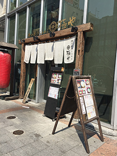 交差点の角に良い看板がついてます。良い立地ですね。しかも黒地に金の文字で重厚な雰囲気出してます。店内も落ち着きのある雰囲気。門構えやメニュー看板から木を使っていて、統一感出してます。