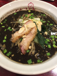 黒ごまが贅沢に使われています。辛さは注文時に選べて、最初なので控えめにしました。たいていの店ではその設定でもちょい辛なのだが、今回はマイルドでもうちょっと辛さが