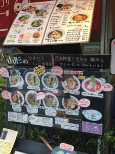 トッピング等他にもありましたが、鶏ぎょうざが4個360円〜、となっていました、1個90円かな?と。