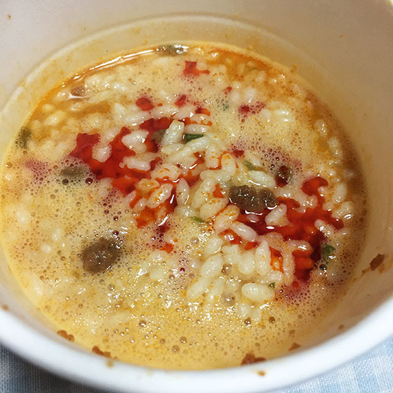 お湯を少なめにしたけど、水分多めでした。次買ったらもっと少なくしてみようかな。辛さもちょうどいい感じ、しびれ具合も。もうちょっと濃い方よかったかなぁ。