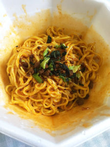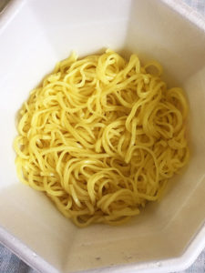 なんかオシャレ?パスタみたい。麺はモチモチ感ありタイプ。好きな感じ。この辺はさすがのラ王。