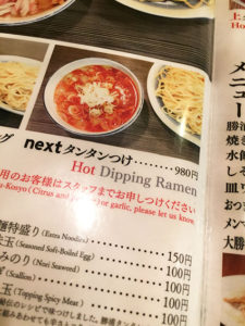 つけ麺食べるつもりで入ったら、担々麺、いや、タンタンつけの文字が。そしたらそれっきゃないなと。