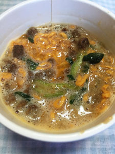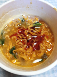 NISSINっぽい容器ですよね、カップヌードル的な。シリーズ並べておいたら絵になるかなぁ。あ、シーフードと混ぜたらどうだろう、とふと思ったけど、2つは食べられないね。不味かったらなおさら。。そんな挑戦をが出来ない年頃です。