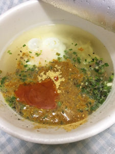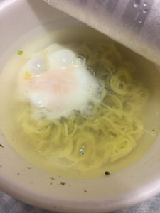 大切な黄身を、お湯を入れる前に割ってしまったんですね〜